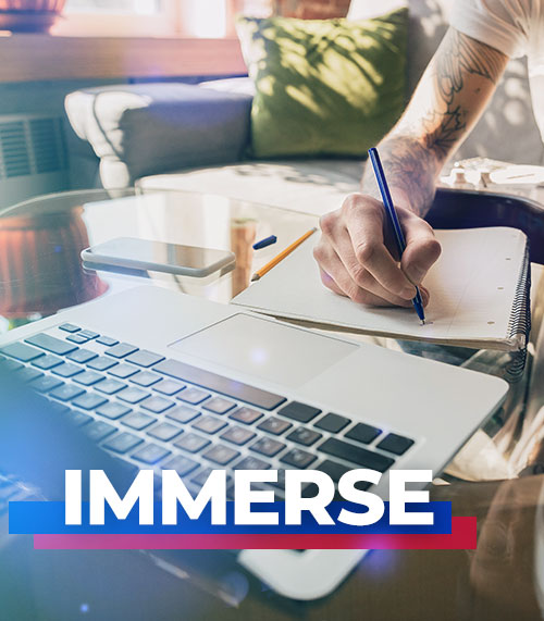 Is an immersive English course designed for whoever wishes to study abroad without leaving their living room. We believe the best way to learn a language is to surround yourself with it, so we provide the necessary tools to make students speak, understand, and read with confidence. Using top-notch technology and a powerful platform, students accelerate their language acquisition through immersion. This journey prepares students to speak English with anyone.